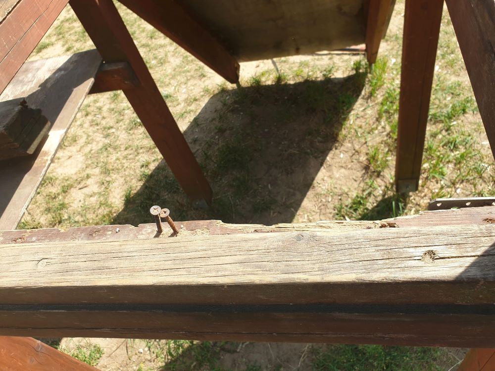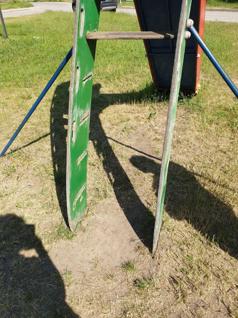 FOTO: Salauztas un sapuvušas konstrukcijas, trūkstoši elementi, bīstamas skrūves, nestabilas iekārtas, pavirši un nekvalitatīvi veikti remonta darbi – realitāte bērnu rotaļu laukumos Līvānos